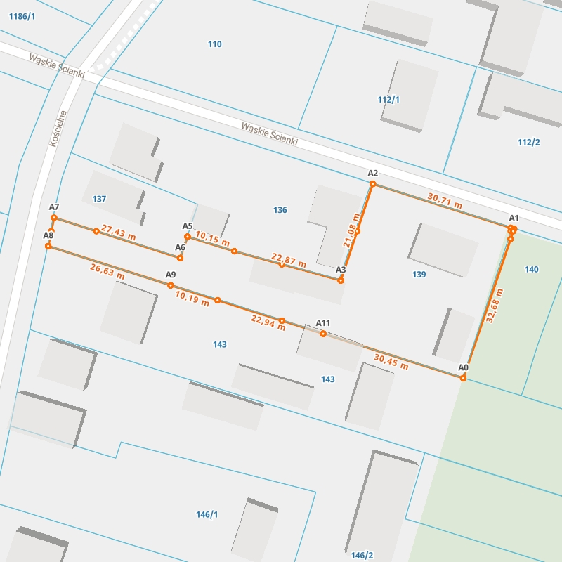 | A1 ← 51.70001708, 22.33418546 | A2 | 30,71 m |
