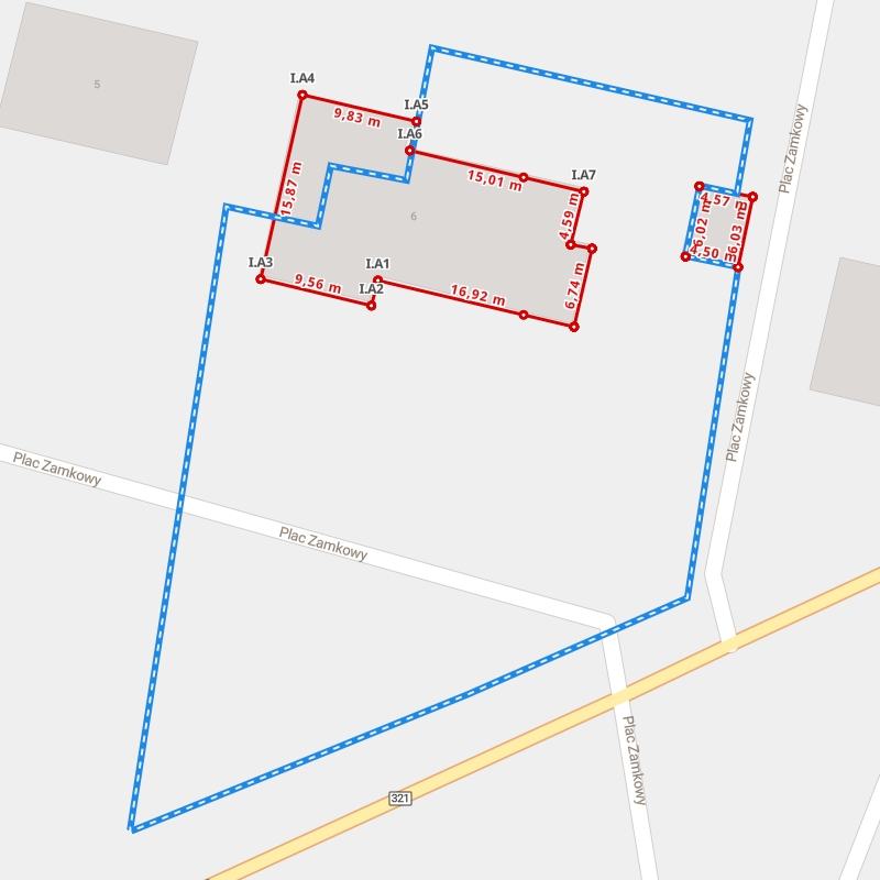 Wymiary budynku na mapie interaktywnej 3D