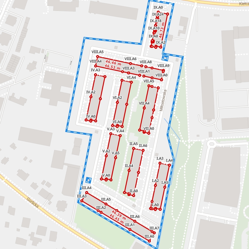 | A8 ← 51.14664544, 17.12076362 | A9 | 61,88 m |