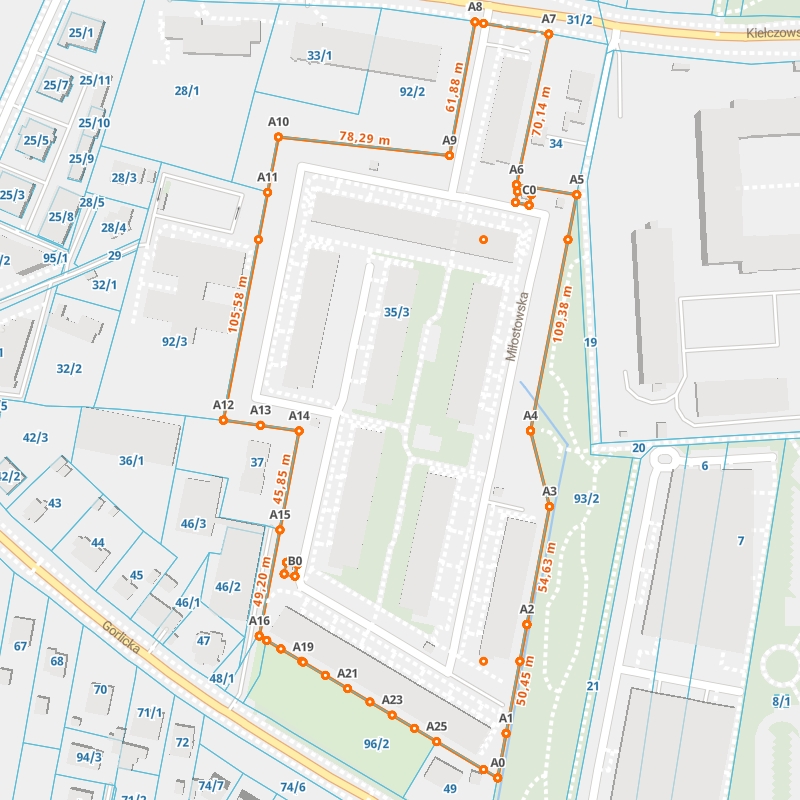 | A0 ← 51.14355582, 17.12091075 | A1 | 20,62 m |
