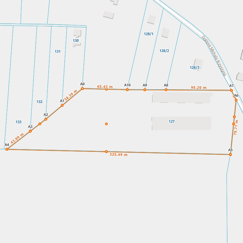 | A0 ← 52.47404161, 18.33978597 | A1 | 38,39 m |