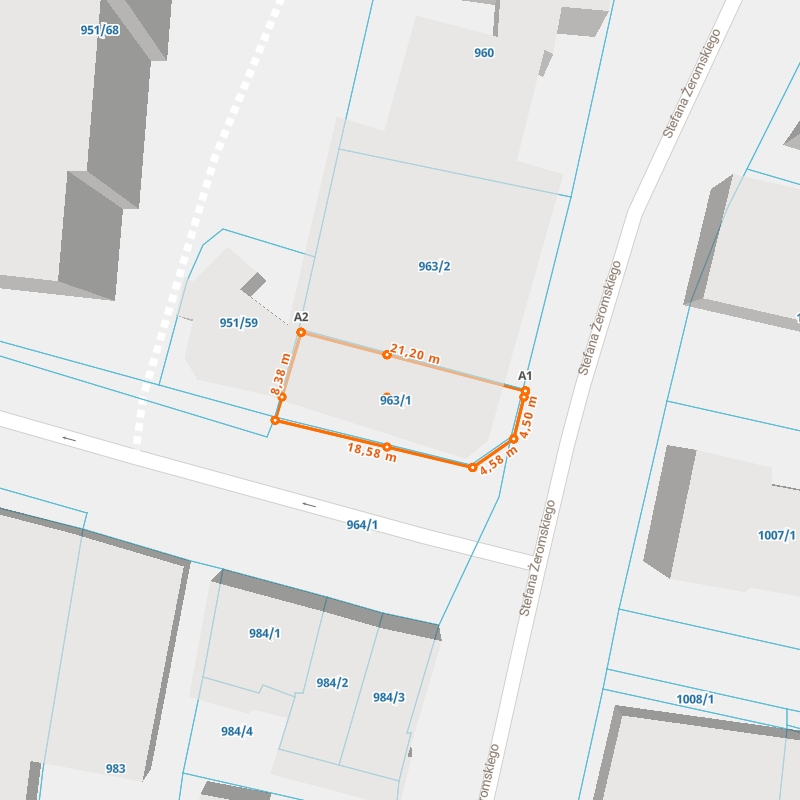 | A1 ← 52.23011746, 20.24077858 | A2 | 21,20 m |