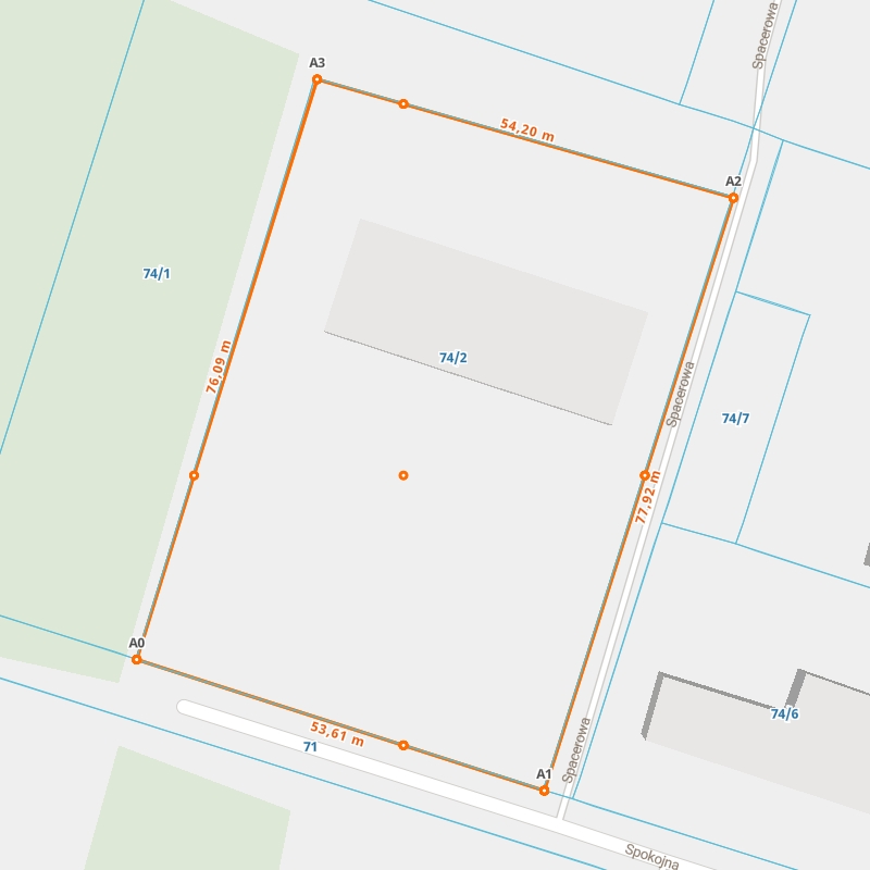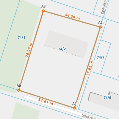 | A1 ← 51.52312957, 23.08905313 | A2 | 77,92 m |