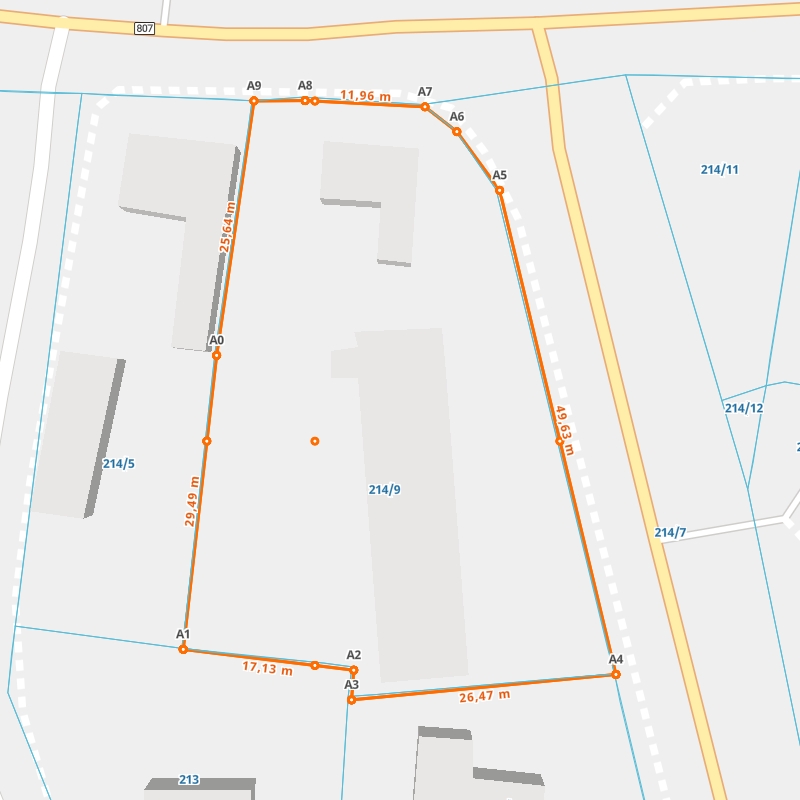 | A9 ← 51.87022459, 22.20225075 | A0 | 25,64 m |