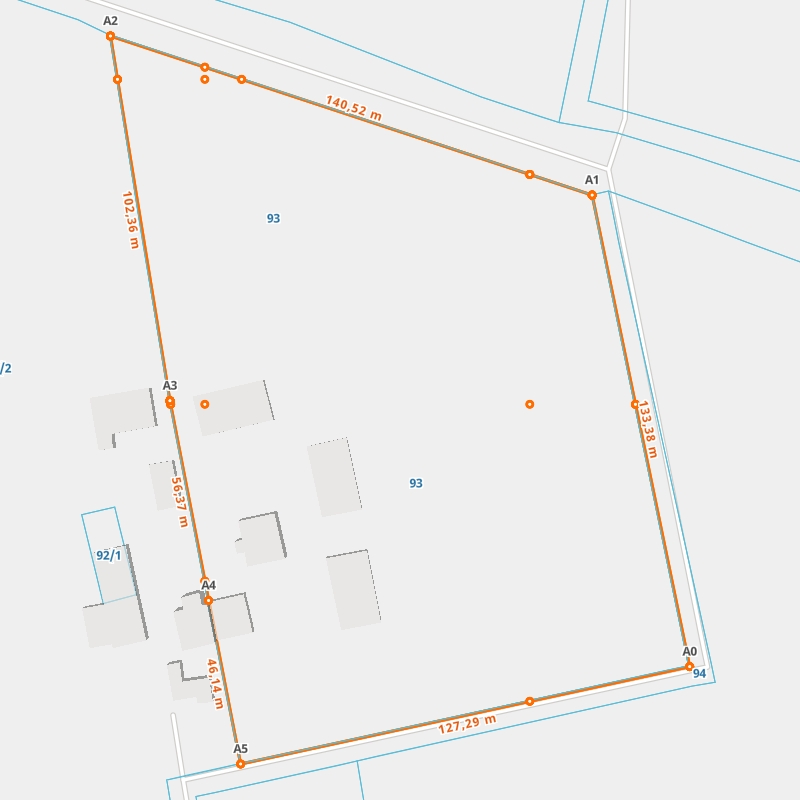 | A1 ← 53.9303362, 19.20367853 | A2 | 140,52 m |