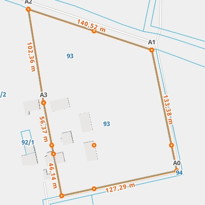 | A0 ← 53.92916285, 19.20409073 | A1 | 133,38 m |