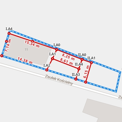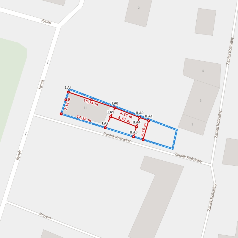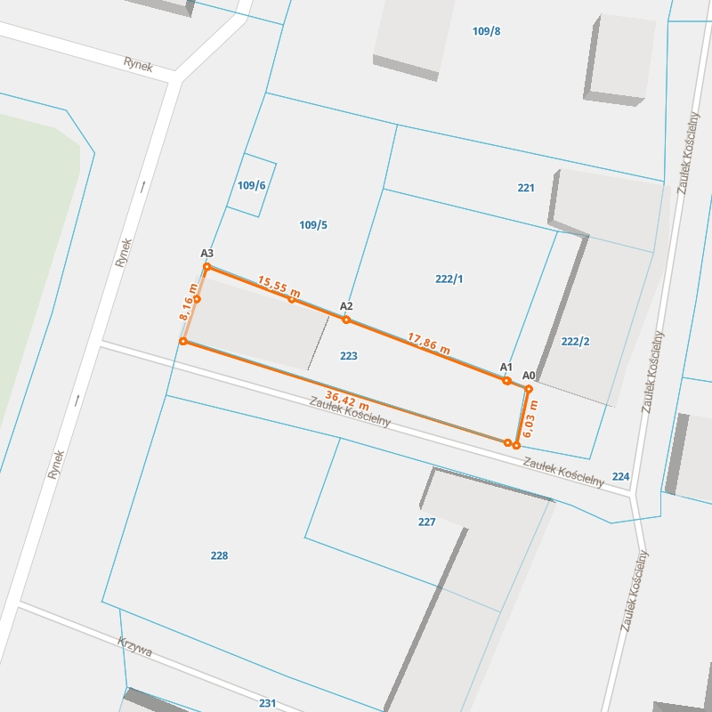 | A1 ← 51.54391002, 16.44962106 | A2 | 17,86 m |