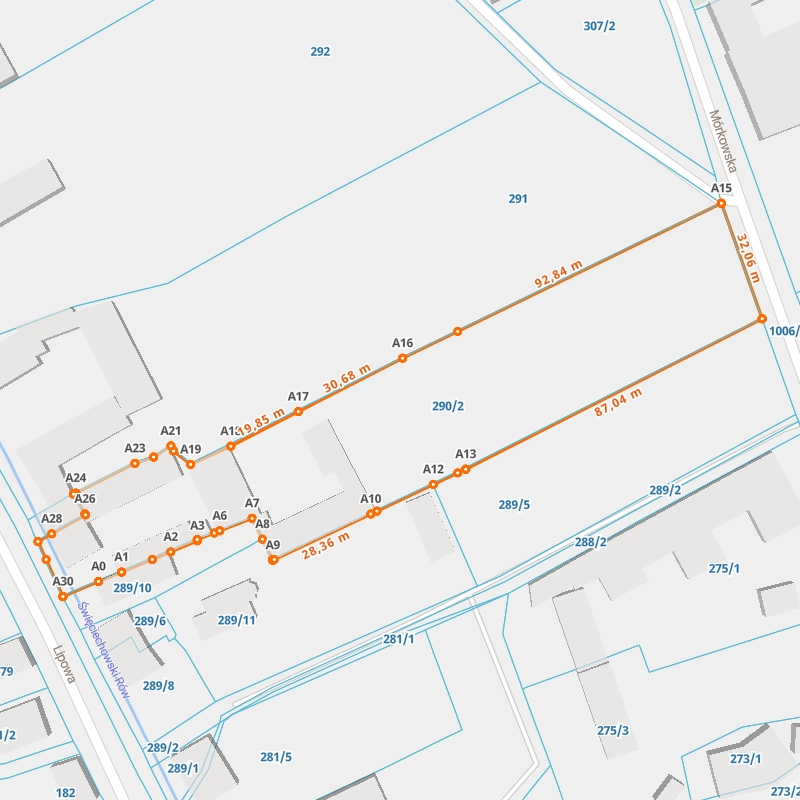 A1 ← 51.85653343, 16.49949777 | A2 | 13,91 m |