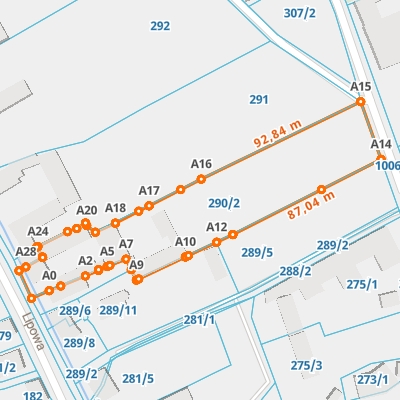 A23 ← 51.85678901, 16.49954878 | A24 | 17,33 m |