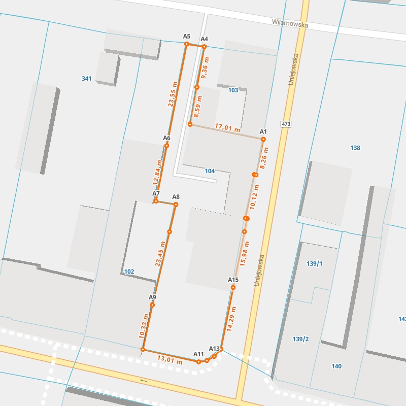 | A1 ← 51.69211474, 18.97647085 | A2 | 17,01 m |