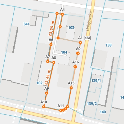 | A5 ← 51.69230929, 18.97621846 | A6 | 23,55 m |