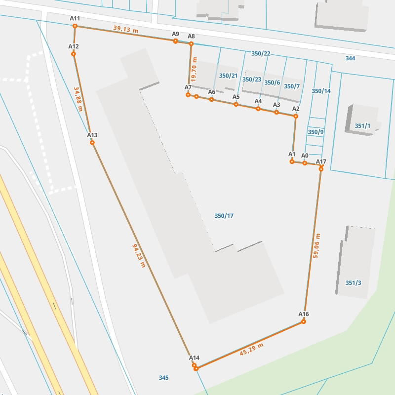 | A1 ← 52.56738038, 20.48935834 | A2 | 17,55 m |