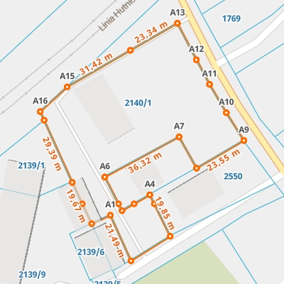 | A1 ← 50.57229148, 22.88321383 | A2 | 21,49 m |