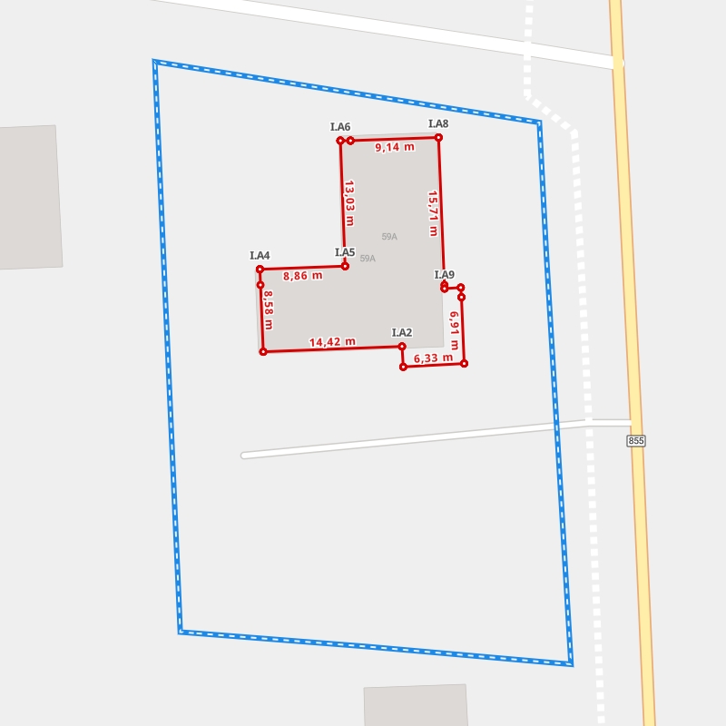 | A6 ← 50.85171897, 22.13298945 | A7 | 13,82 m |