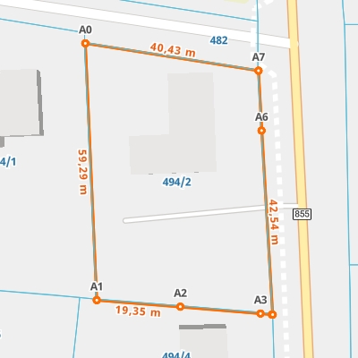 | A1 ← 50.85136758, 22.13244837 | A2 | 19,35 m |