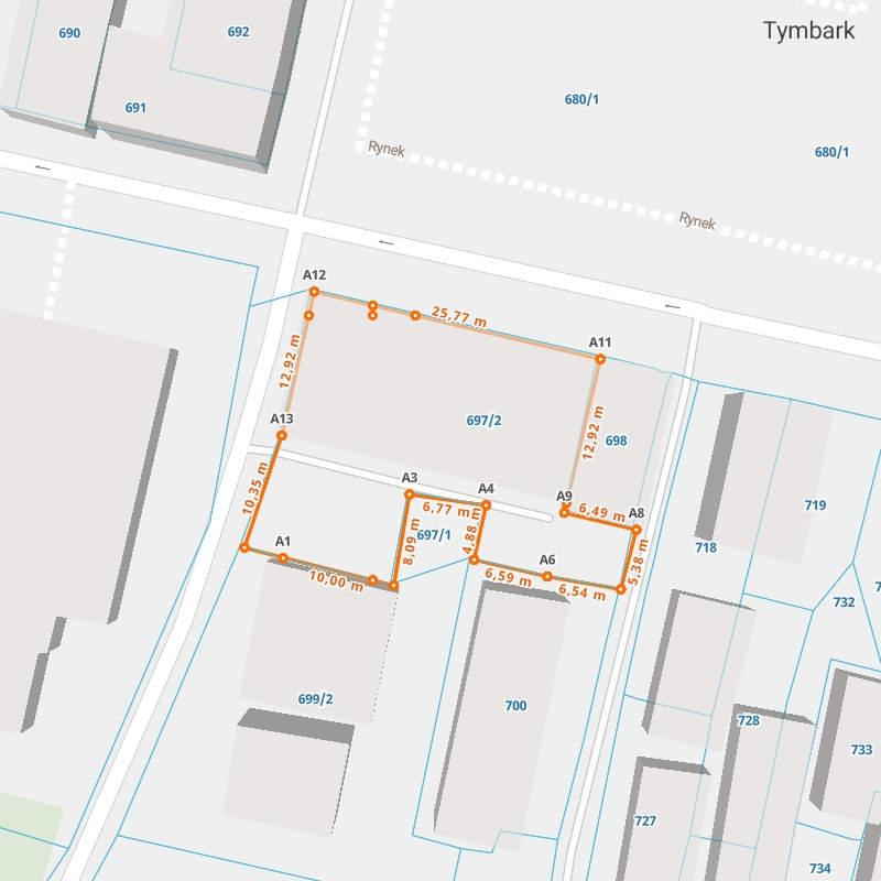 Sprawdź wymiary dowolnej działki oraz wymiary budynków na niej znajdujących się. Wyszukaj działkę po identyfikatorze lub adresie (np: 100204_4.0001.473) lub wyszukaj na mapie Geoportal Tymbark. Pobierz raport z wymiarami działki lub bezpłatnie wykonaj pomiary na mapie.