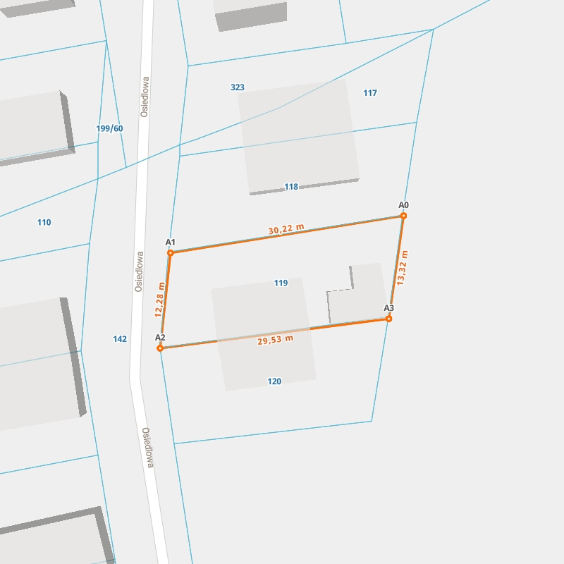 | A0 ← 52.8012302, 18.87612301 | A1 | 30,22 m |
