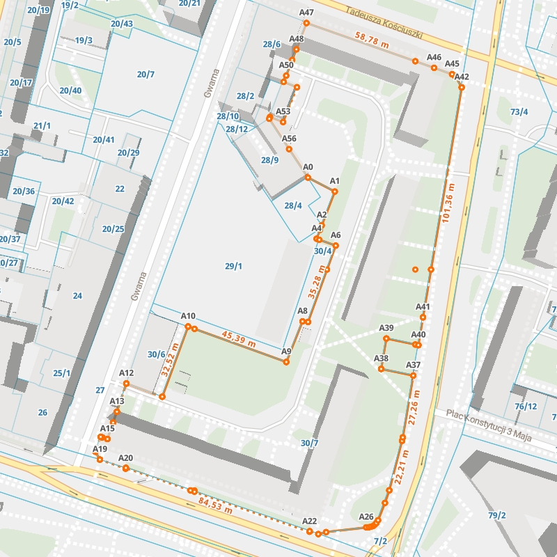 | A6 ← 51.10059714, 17.03861307 | A7 | 35,28 m |