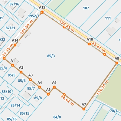 | A7 ← 50.08619887, 22.68880168 | A8 | 136,20 m |