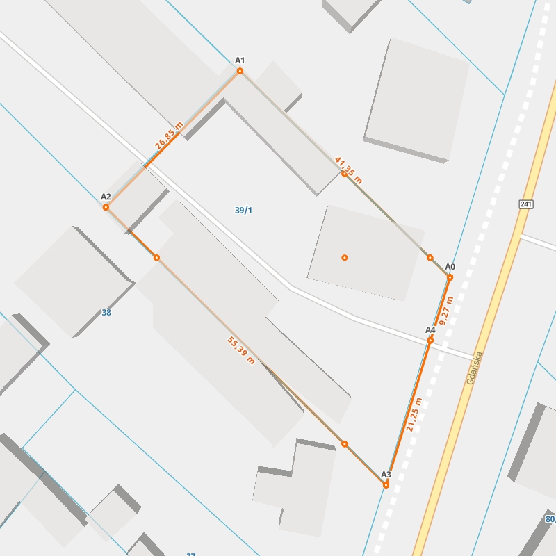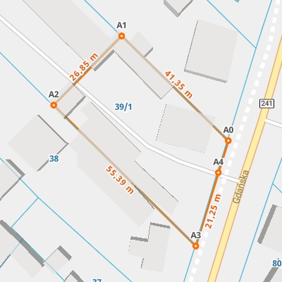 | A0 ← 53.35810844, 17.48874058 | A1 | 41,35 m |