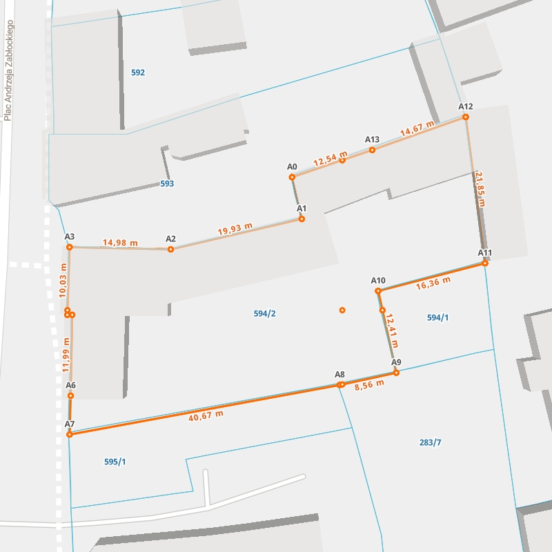 Ryc. 1. Parametry geometryczne terenu. Wymiary działki na kórej znajduje się Urząd Miasta i Gminy Witnica