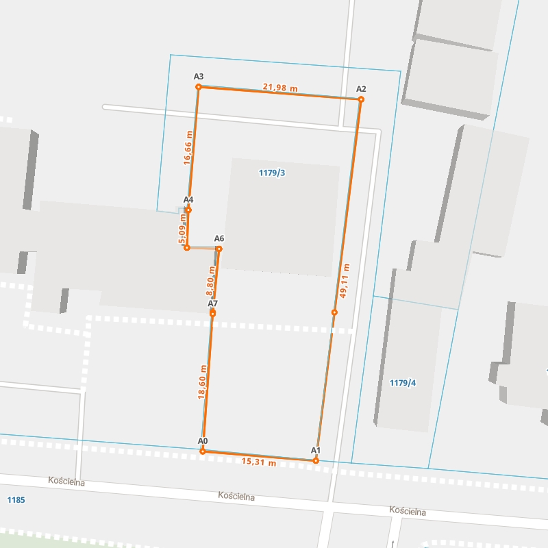 | A1 ← 51.77084701, 22.31250838 | A2 | 49,11 m |