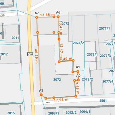 | A7 ← 50.38518053, 19.75910906 | A8 | 46,39 m |