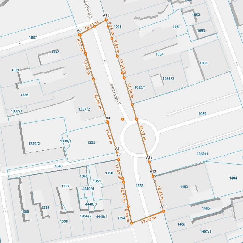 A17 ← 52.32626275, 17.56534205 | A18 | 9,75 m |