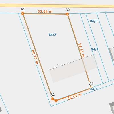 | A0 ← 53.36465564, 19.79400242 | A1 | 33,64 m |