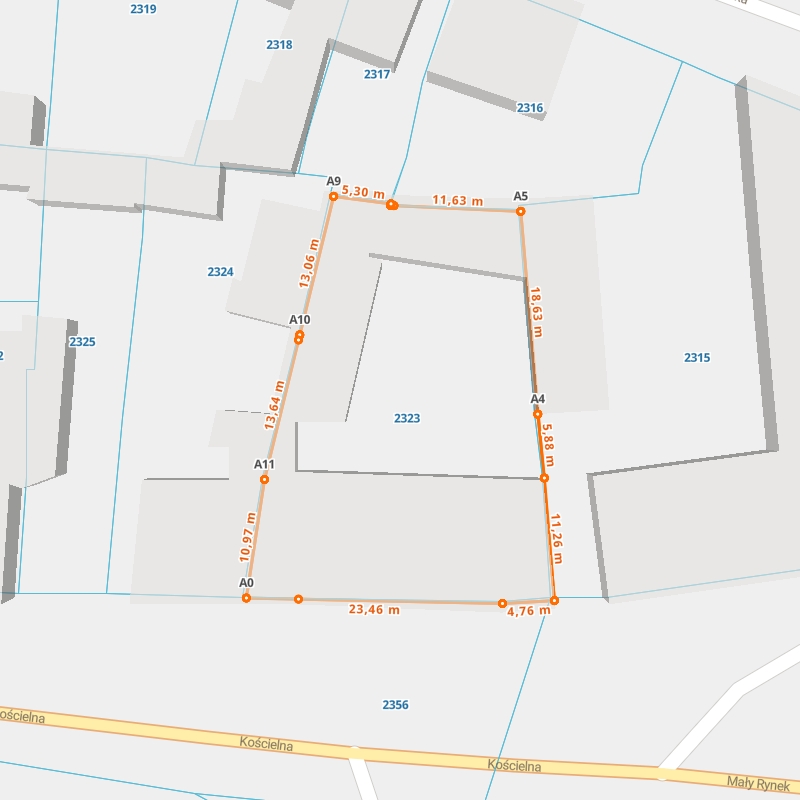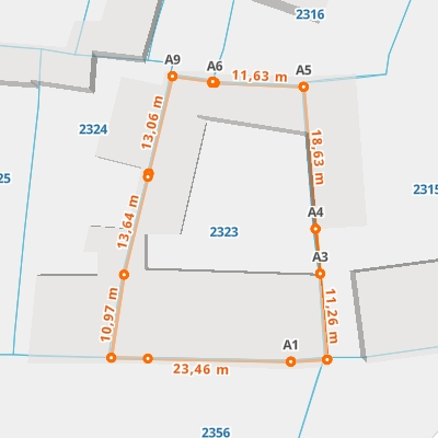 | A0 ← 52.16826588, 17.89768858 | A1 | 23,46 m |