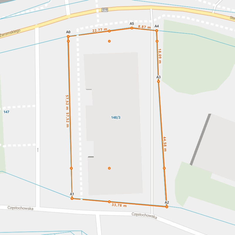 | A4 ← 53.84628194, 19.60707513 | A5 | 8,87 m |