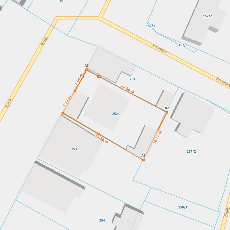 | A1 ← 52.7570471, 22.12427161 | A2 | 16,72 m |