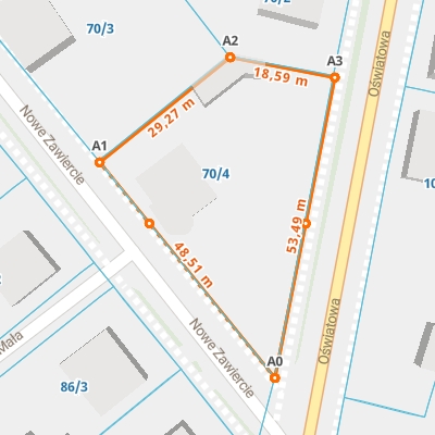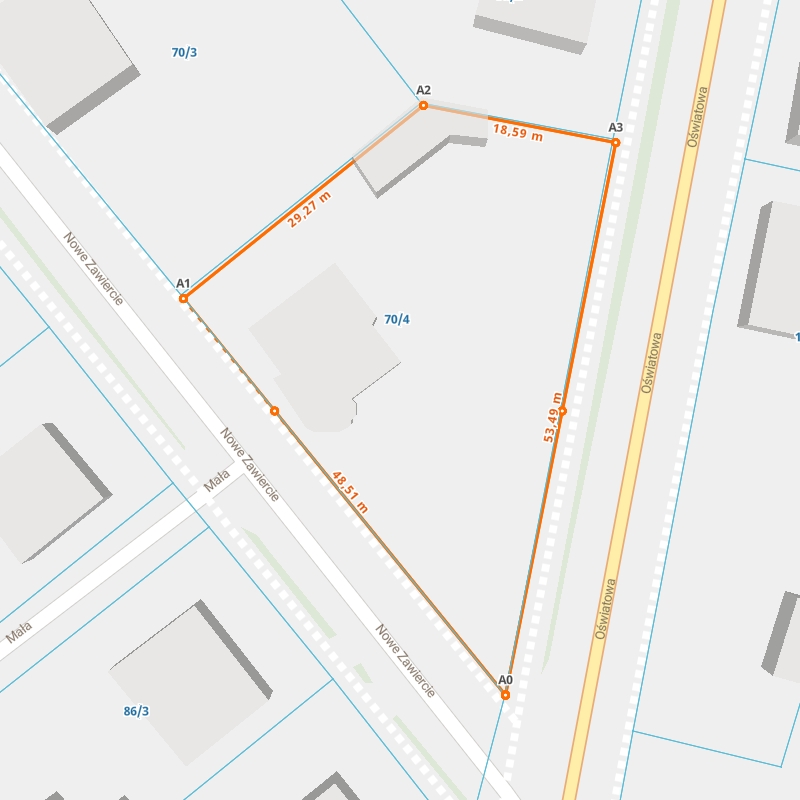 | A3 ← 50.50426681, 19.41318343 | A0 | 53,49 m |