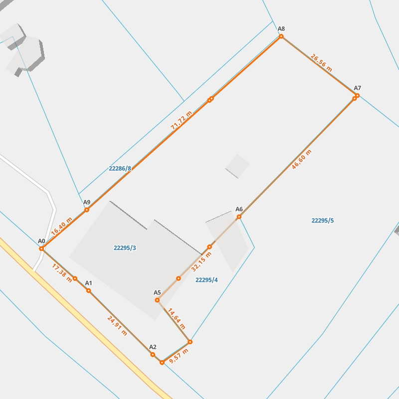 | A0 ← 49.61323065, 19.55261975 | A1 | 17,38 m |
