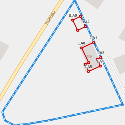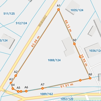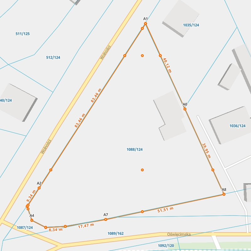 | A0 ← 50.41728306, 18.75700758 | A1 | 40,12 m |