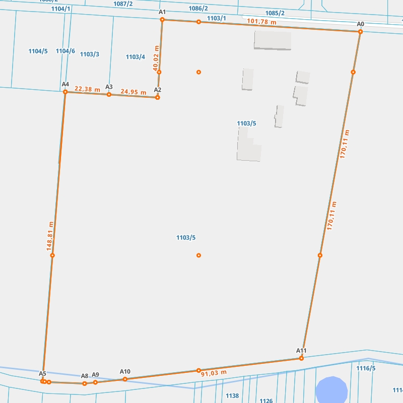 | A0 ← 52.09361562, 22.43735438 | A1 | 101,78 m |