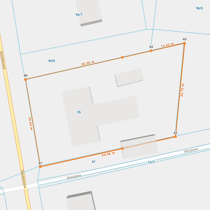 | A1 ← 51.0217561, 23.67336305 | A2 | 54,08 m |